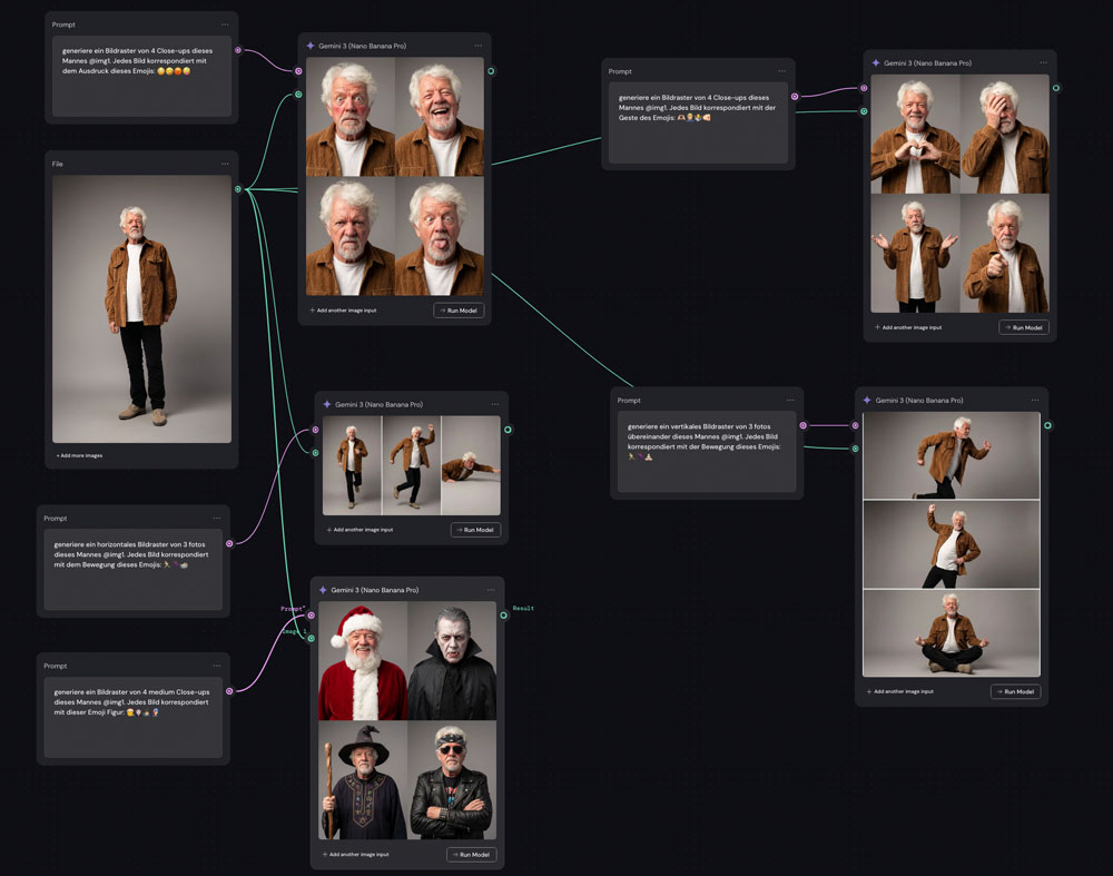 Das Tolle und ein großer Vorteil daran ist, dass ich alles auf einer Oberfläche / einem Canvas abbilden kann. Das heißt, ich kann in einem Workflow verschiedene Tools und Ergebnisse miteinander verknüpfen, die wiederum zu neuen Ergebnissen führen.